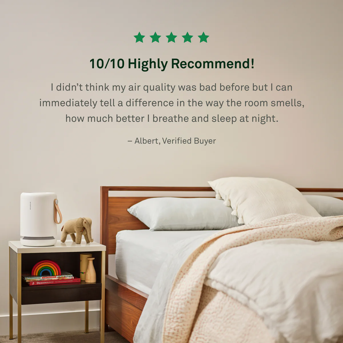Compact air purifier great for bedrooms, home offices, or bathrooms
